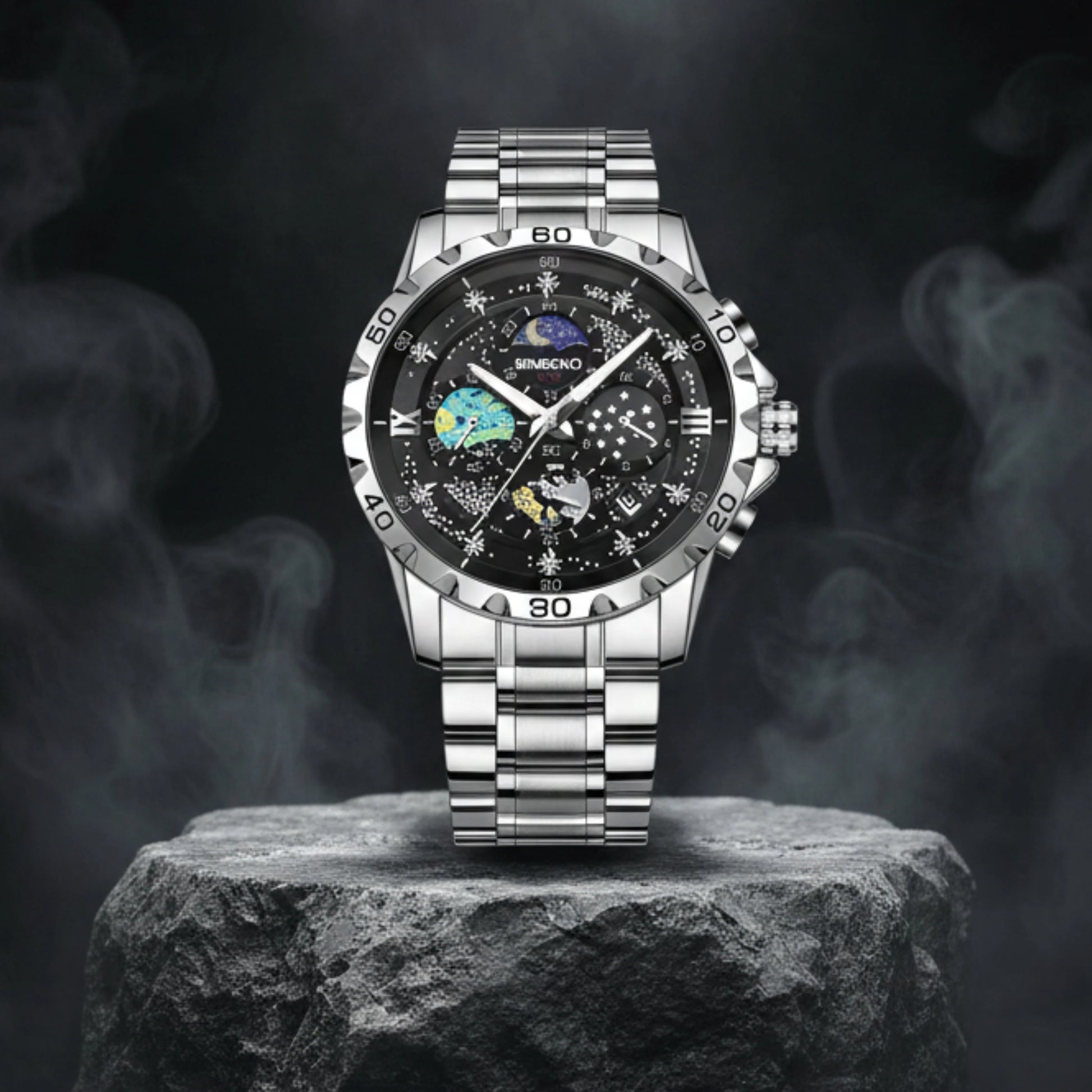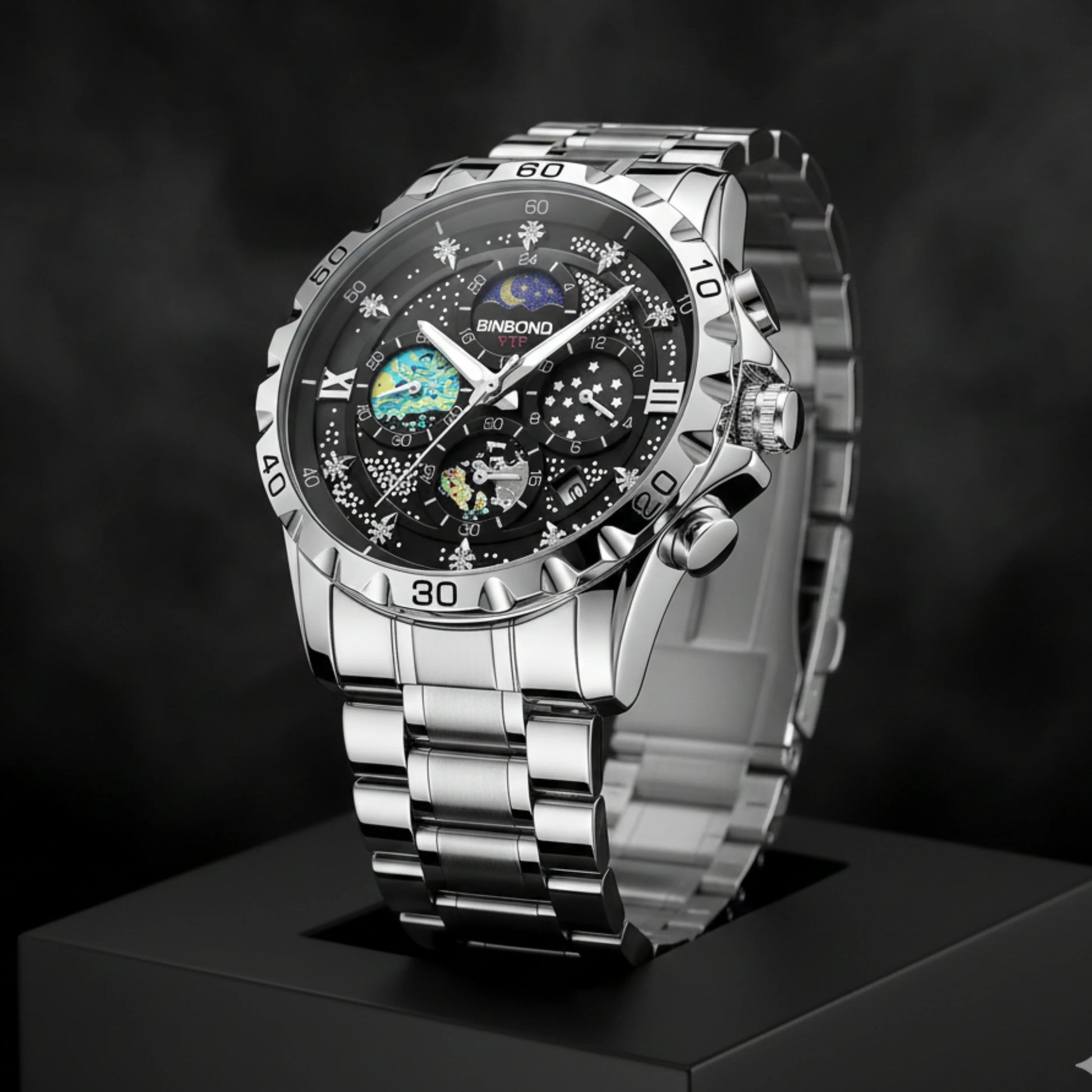 El BINBOND B3225 combina elegancia y durabilidad en un diseño moderno y versátil. Su correa de acero inoxidable dorado y su movimiento de cuarzo garantizan precisión y estilo. Ideal para hombres que buscan un reloj resistente, funcional y con presencia.
